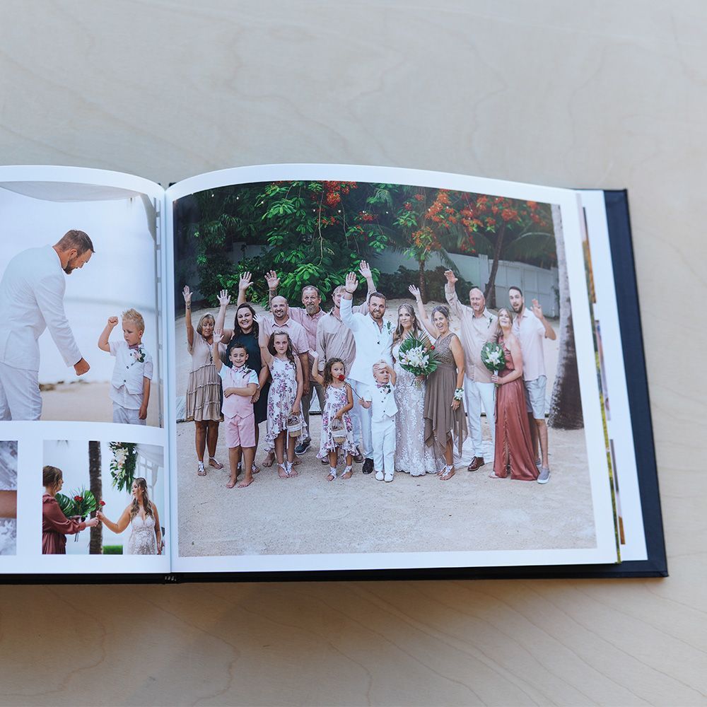 Hardcover photo book with 24 pages included, up to 24 additional pages available for a total of 48 pages.